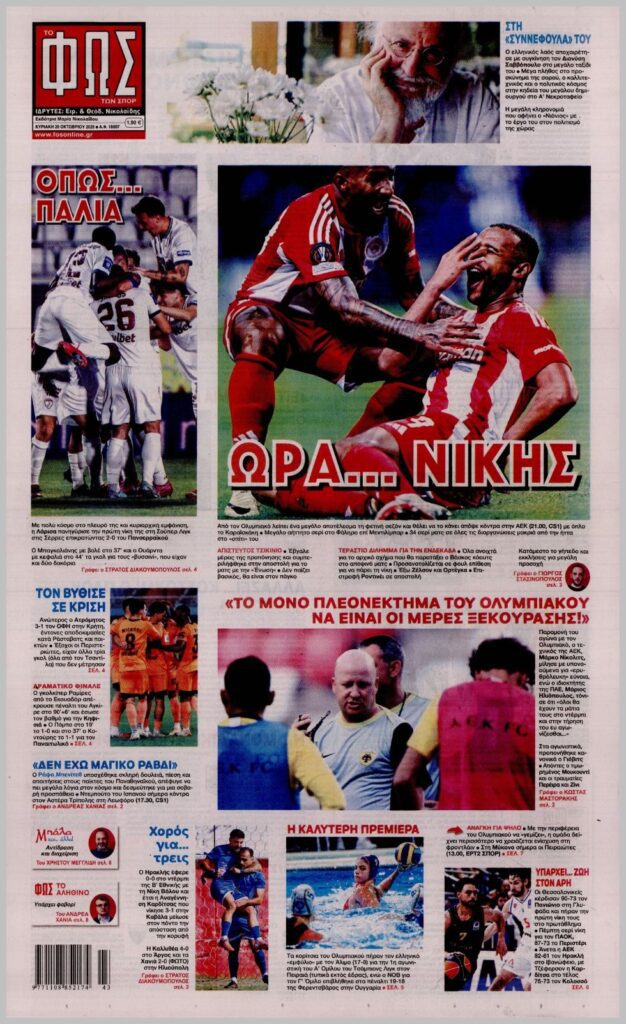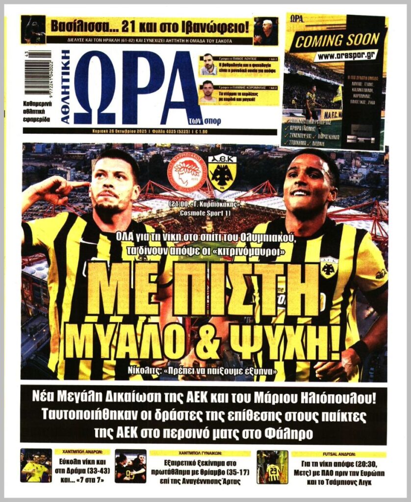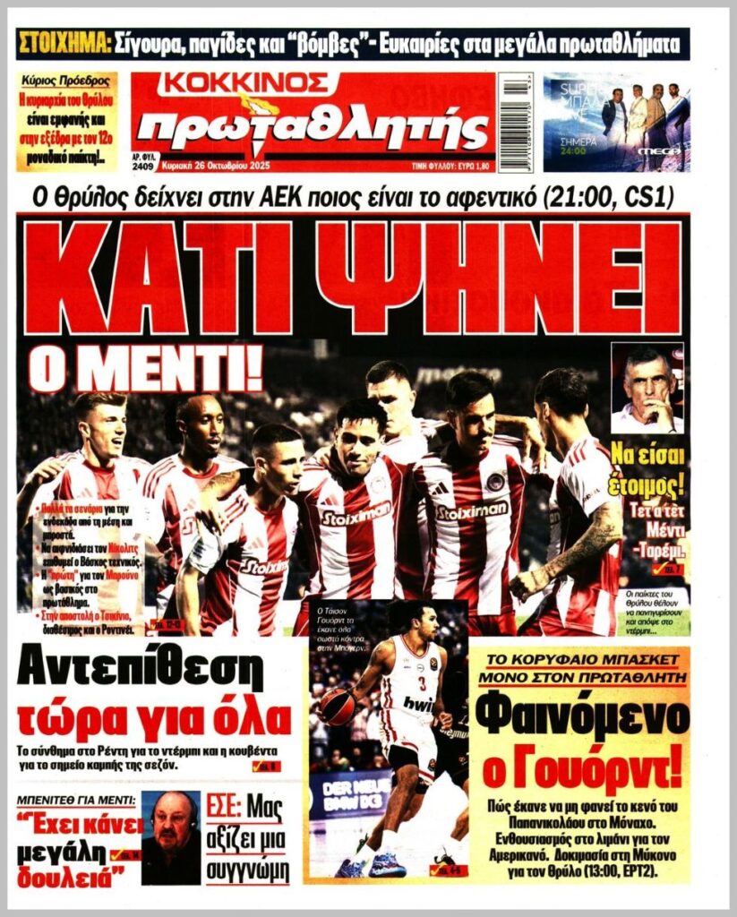 Τα αθλητικά πρωτοσέλιδα της Κυριακής 26/10