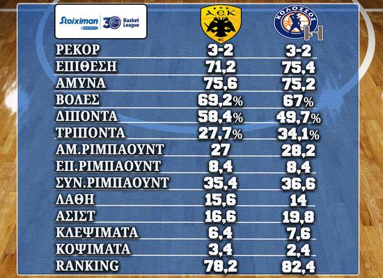 ΑΕΚ και Κολοσσός Ρόδου θα διασταυρώσουν τα «ξίφη» τους στην 6η αγωνιστική της Stoiximan Basket League, με την επίσημη ιστοσελίδα του πρωταθλήματος να αναλύει τους αριθμούς των δύο ομάδων.
