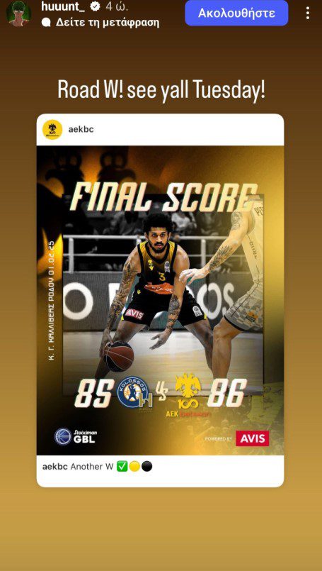 Ο Χάντερ Χέιλ, ένας από τους πιο εκρηκτικούς παίκτες της ΑΕΚ Betsson, έστειλε ξεκάθαρο μήνυμα προς τον κόσμο της ομάδας. Με ανάρτησή του στα social media, ο Αμερικανός γκαρντ τόνισε: «Εκτός έδρας νίκη! Τα λέμε την Τρίτη», καλώντας τους φιλάθλους να γεμίσουν τη Sunel Arena και να δημιουργήσουν μια ατμόσφαιρα αντάξια της σημασίας του αγώνα.