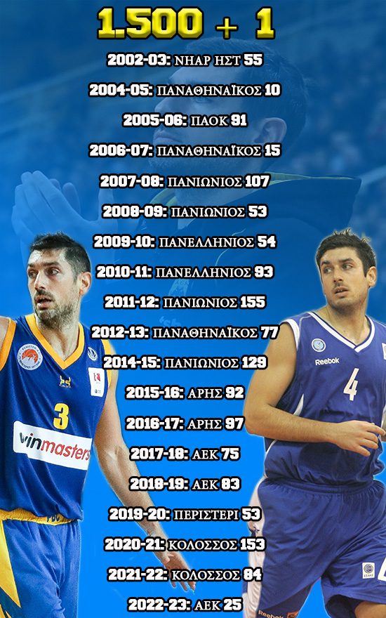 Χρειάστηκε να μείνει για 14:33 στο παρκέ για τον αγώνα της ΑΕΚ με τον Ιωνικό και να μοιράσει δύο ασίστ για να φτάσει ο Βασίλης Ξανθόπουλος σε ένα ιστορικό επίτευγμα. Ο πολύπειρος γκαρντ έγινε ο τρίτος παίκτης στην ιστορία του επαγγελματικού Πρωταθλήματος (από το 1992-93) που έφτασε τις 1.500 ασίστ.