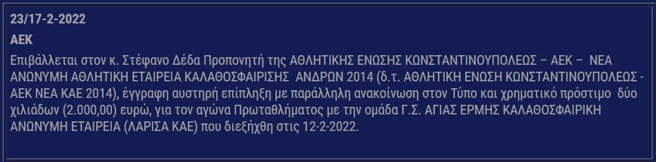 Δείτε την ανακοίνωση από τον αθλητικό δικαστή του ΕΣΑΚΕ:
