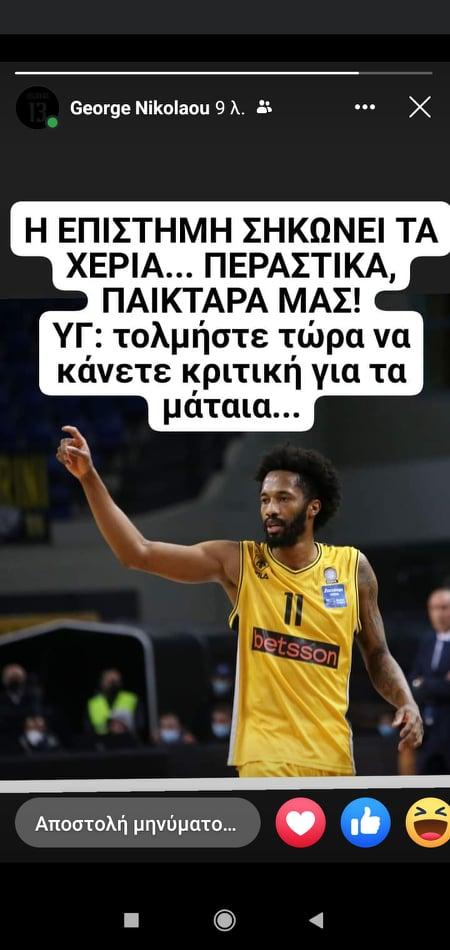 Πριν λίγο, ο υπεύθυνος επικοινωνίας της ΚΑΕ, Γιώργος Νικολάου, ευχήθηκε περαστικά στον «παικταρά» Ανγκόλα, με ανάρτηση του στο Facebook.