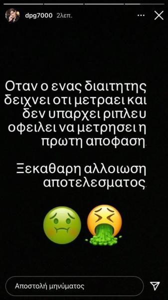Στην πρώτη του ανάρτηση, έγραψε με κόκκινα γράμματα: «Κλέφτες», ενώ ακολούθησε και δέυτερη που έγραφε: «Όταν ο ένας διαιτητής δείχνει ότι μετράει και δεν υπάρχει ριπλέι, οφείλει να μετρήσει η πρώτη απόφαση. Ξεκάθαρη αλλοίωση αποτελέσματος».