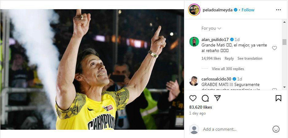 Με αφορμή την ανάρτηση του Ματίας Αλμέιδα, με την οποία αποχαιρέτησε την ΑΕΚ και τους φίλους της ομάδας, ο Πουλίδο σχολίασε δημόσια: “Μεγάλε Ματί, ο καλύτερος, έλα τώρα να ενωθείς ξανά με την αγέλη”, ένα μήνυμα που γνώρισε τεράστια ανταπόκριση, συγκεντρώνοντας πάνω από 15.000 likes.