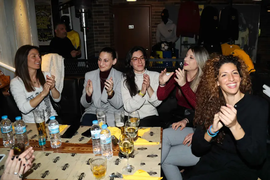 Ξεχωριστή βραδιά ήταν η χθεσινή (σ.σ. Πέμπτη 10 Μαρτίου), καθώς πραγματοποιήθηκε στην πάντα φιλόξενη «Βυζαντινή Γωνιά», στη Νέα Φιλαδέλφεια, η κοπή πίτας για το νεοσύστατο τμήμα ποδοσφαίρου γυναικών της ΑΕΚ.