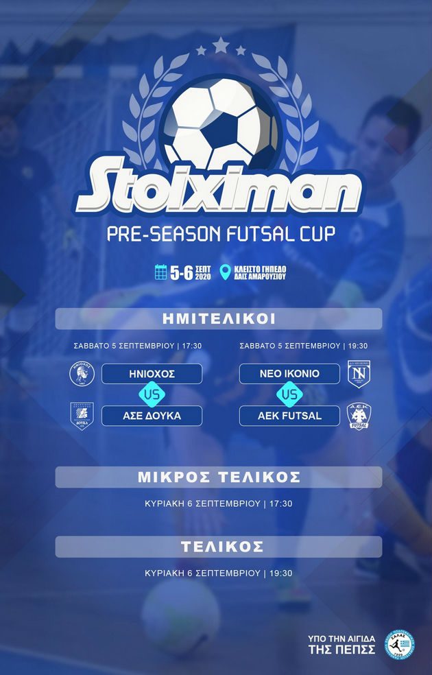 Τα πρώτα παιχνίδια προετοιμασίας ενόψει της νέας αγωνιστικής περιόδου θα δώσει το Σαββατοκύριακο 05-06 Σεπτεμβρίου η ανδρική ομάδα ποδοσφαίρου σάλας της ΑΕΚ. Οι Πρωταθλητές Ελλάδος θα αγωνιστούν στο Stoiximan Pre-Season Futsal Cup το οποίο διοργανώνει η ΠΕΠΠΣ στο Δαΐς, ενώ το “παρών” θα δώσουν ακόμα ο Ηνίοχος, το Νέο Ικόνιο και ο ΑΣΕ Δούκα.