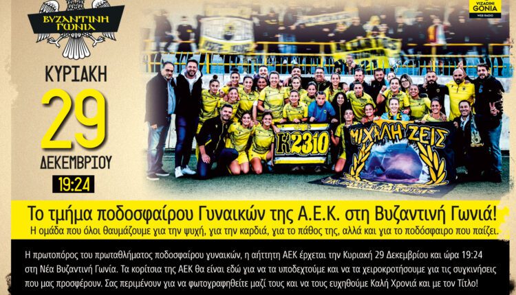 Την Κυριακή 29 Δεκεμβρίου, η πρωτοπόρος και αήττητη ομάδα ποδοσφαίρου γυναικών της ΑΕΚ θα βρεθεί στη «Βυζαντινή Γωνιά» σε μια ξεχωριστή εκδήλωση, όπου θα έχει την ευκαιρία να συναντήσει από κοντά τους φιλάθλους της.
