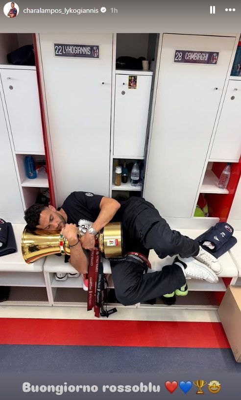 Η Μπολόνια κατέκτησε το Κύπελλο Ιταλίας για πρώτη φορά μετά από 51 χρόνια, επικρατώντας με 1-0 της Μίλαν στον τελικό. Ο Λυκογιάννης, που δεν αγωνίστηκε στο ματς, δεν έκρυψε τη χαρά του για τη μεγάλη επιτυχία της ομάδας του και το έδειξε με έναν… viral τρόπο, μέσα από το προσωπικό του Instagram story.
