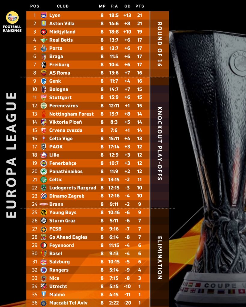 Europa League: Η τελική βαθμολογία της League Phase