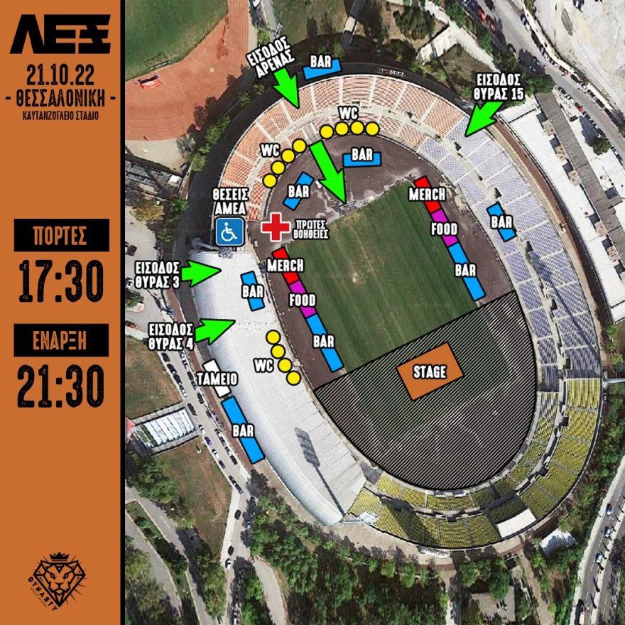 Μάλιστα, λόγω των χιλιάδων κόσμου που θα παρακολουθήσει τη συναυλία, δόθηκαν οδηγίες προσέλευσης, προκειμένου να μην υπάρξουν προβλήματα. Έτσι, όπως έγινε γνωστό οι πόρτες θα ανοίξουν στις 17.30 και η συναυλία θα ξεκινήσει στις 21.30.