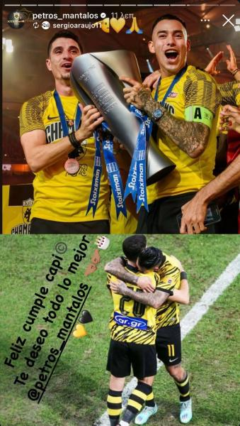 Τα γενέθλια του γιορτάζει σήμερα ο Πέτρος Μάνταλος, αφού κλείνει τα 34 χρόνια. Πολλοί συμπαίκτες του έμπειρου ποδοσφαιριστή της ΑΕΚ του ευχήθηκαν, με τον Σέρχιο Αραούχο να είναι ένας από αυτούς. Οι δυο τους φαίνεται πως διατηρούν ακόμα ένα ισχυρό δέσιμο, το οποίο προέρχεται από την κοινή τους πορεία στην Ένωση.
