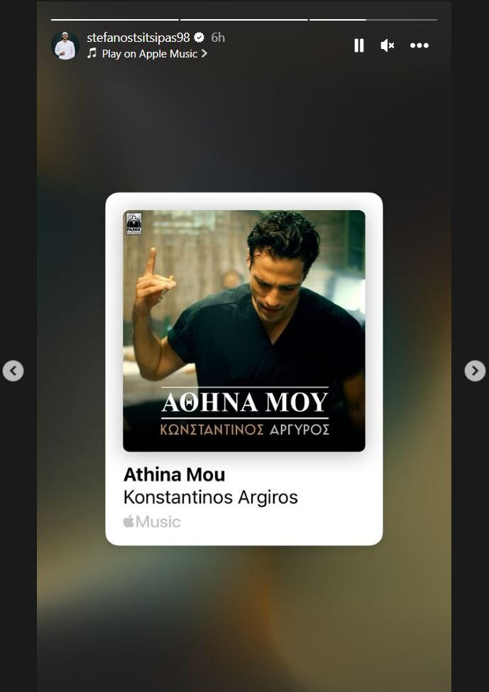 Η φιλία του Στέφανου Τσιτσιπά με τον Κωνσταντίνο Αργυρό είναι γνωστή και τα ξημερώματα του Σαββάτου ο Στέφανος ανέβασε story τη μεγάλη επιτυχία του Αργυρού, “Αθήνα μου” ενώ είχε την ευκαιρία να τον συναντήσει και στα καμαρίνια.