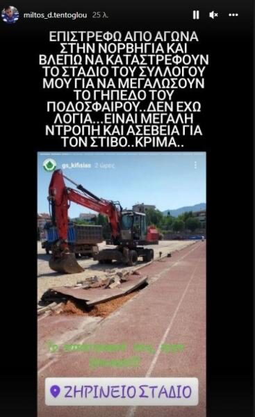 Ο Μίλτος Τεντόγλου με ανάρτησή του, δεν έκρυψε την αγανάκτηση του για το γεγονός ότι ξηλώθηκε μία γραμμή από το ταρτάν του στίβου στο Ζηρίνειο.