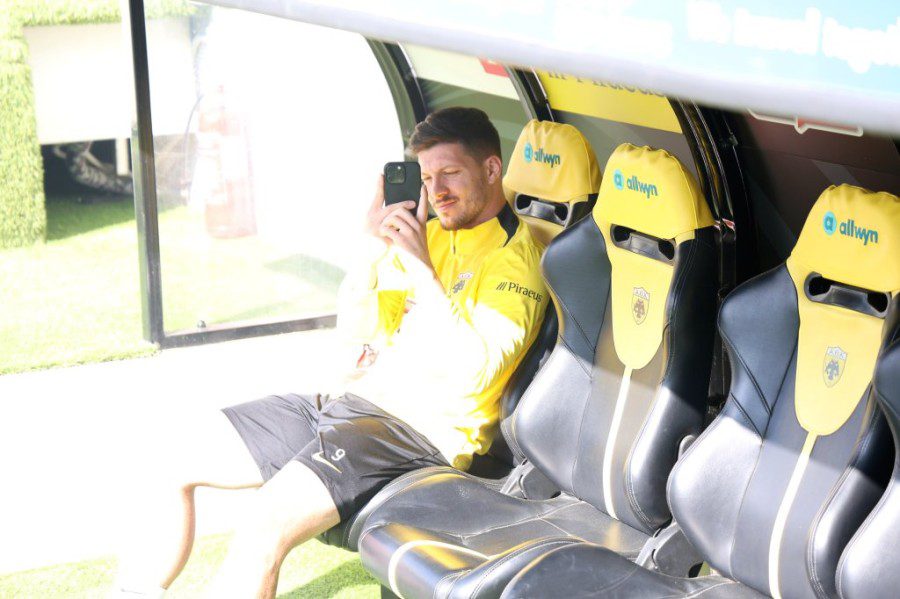 Ο Σέρβος επιθετικός, εμφανώς ενθουσιασμένος από το σκηνικό στις εξέδρες, κάθισε για λίγο στον πάγκο και άρχισε να τραβά βίντεο και φωτογραφίες από τον κόσμο που είχε γεμίσει το γήπεδο.