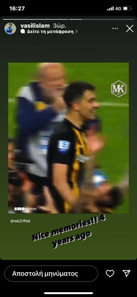 Ο πρώην ποδοσφαιριστής τη ΑΕΚ ανέβασε ένα story με βίντεο γράφοντας: «Όμορφες αναμνήσεις, πριν από τέσσερα χρόνια».
