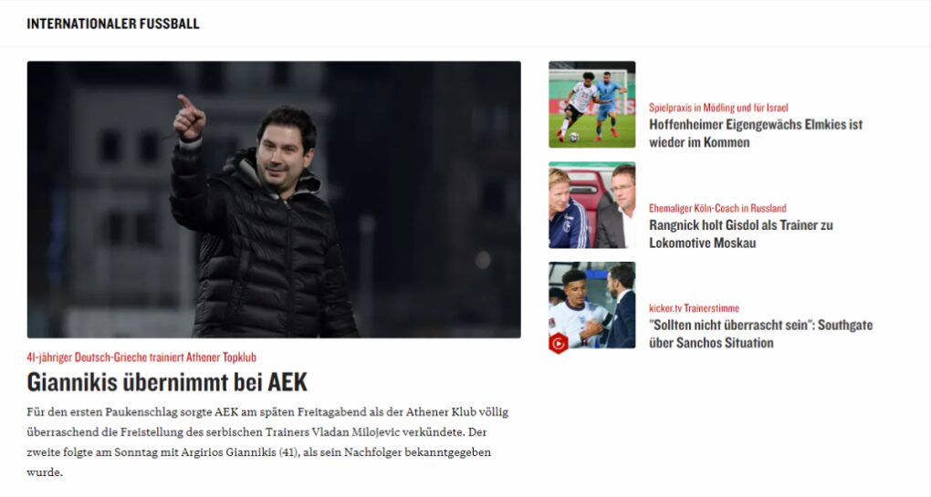 Η γνωστή ιστοσελίδα “Kicker” σχολίασε την πρόσληψη του Αργύρη Γιαννίκη από την ΑΕΚ.
