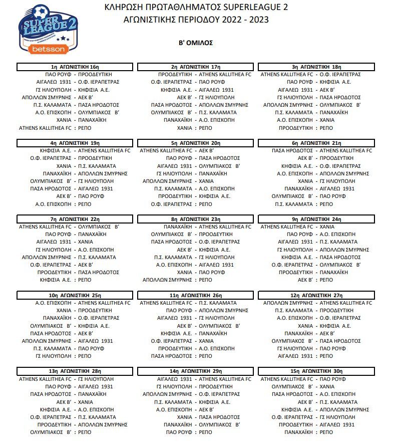 Δείτε το πλήρες πρόγραμμα της Super League 2