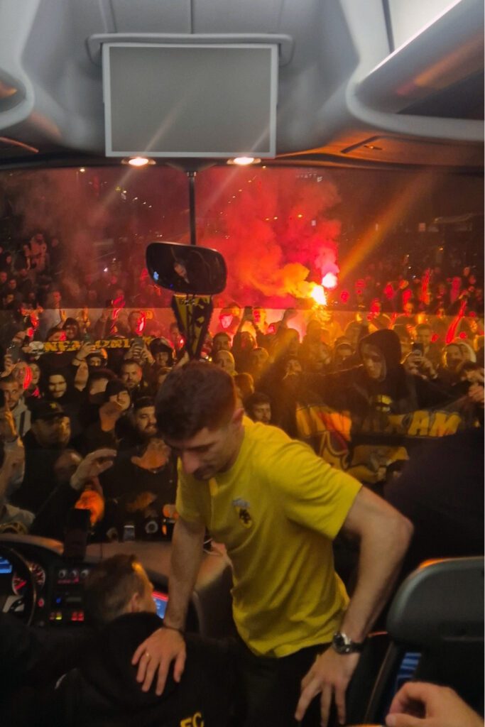 Στη Νέα Φιλαδέλφεια στήθηκε ένα τρελό γλέντι με συνθήματα, τραγούδια και πανηγυρισμούς, δείχνοντας για άλλη μια φορά την αφοσίωση και τον παλμό του λαού της ΑΕΚ. Η νίκη στο Καραϊσκάκη ένωσε τους φιλάθλους και την ομάδα σε μια ανεπανάληπτη στιγμή γιορτής.