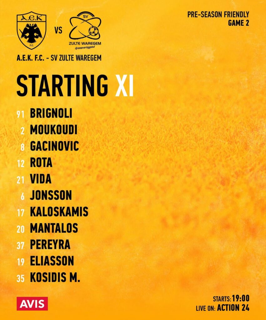 Δείτε τις αρχικές επιλογές του Μάρκο Νίκολιτς, για το δεύτερο φιλικό της ΑΕΚ επι ολλανδικού εδάφους, απέναντι στη Ζούλτε Βάρεγκεμ.