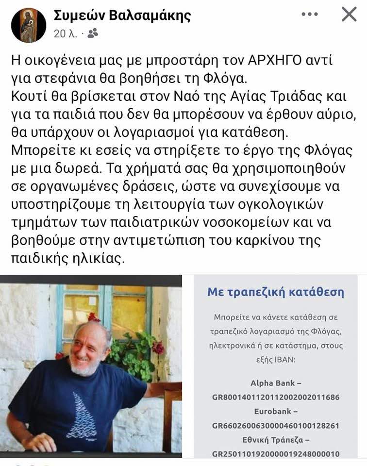 Αντί στεφάνων, στήριξη στη «Φλόγα»