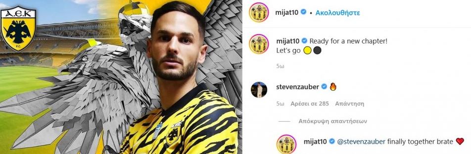 Ο Ελβετός άσος της ΑΕΚ έκανε ένα σχόλιο με… φωτιές στην ανάρτηση του Γκατσίνοβιτς με τα κιτρινόμαυρα. Από κάτω ο Σέρβος του απάντησε: «Επιτέλους μαζί αδερφέ».