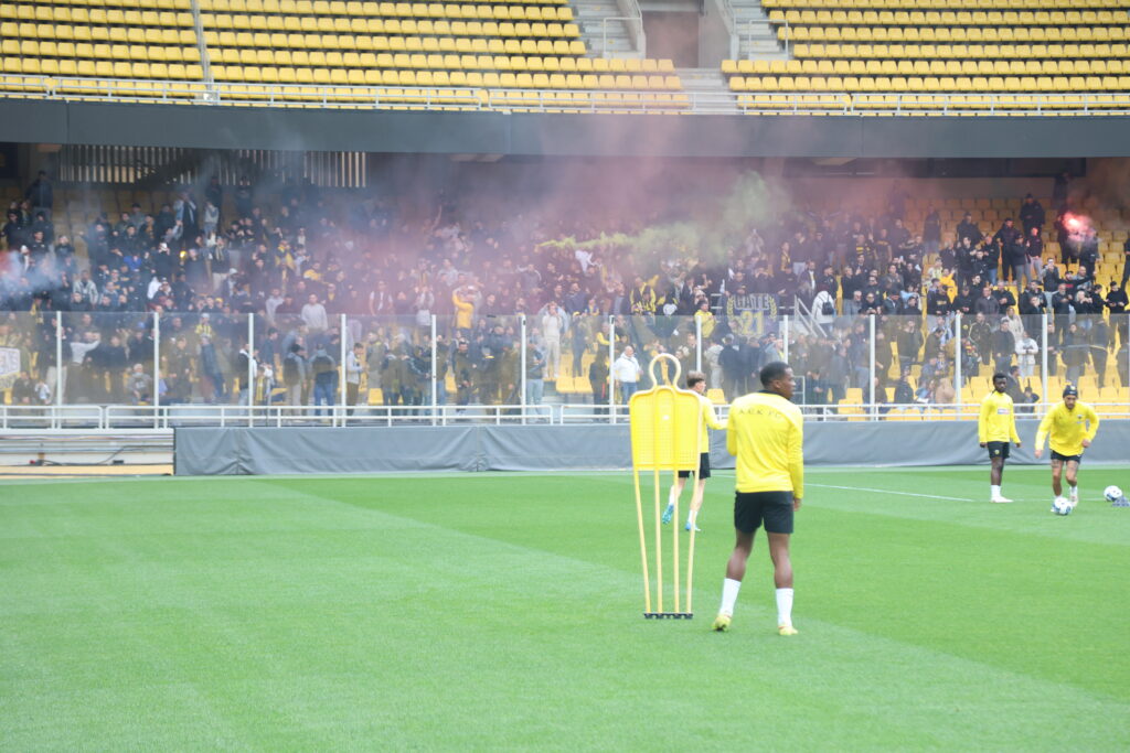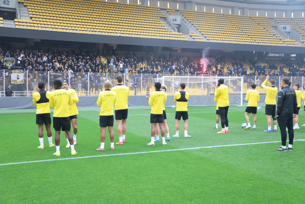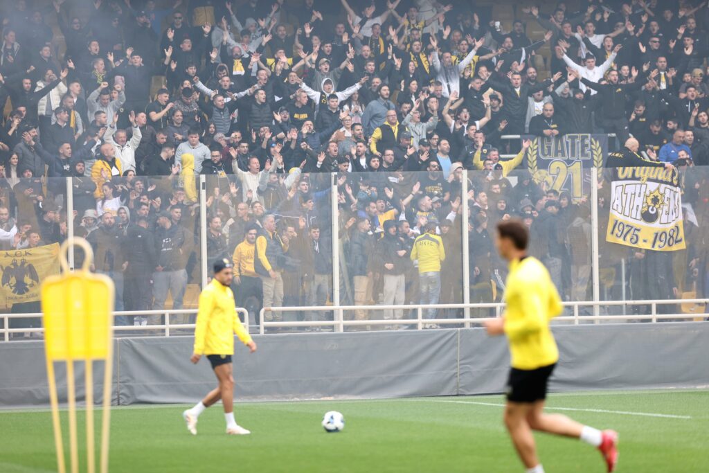 Η προπόνηση της ΑΕΚ στη Νέα Φιλαδέλφεια έγινε το απόλυτο γεγονός για τους φίλους της ομάδας, οι οποίοι βρέθηκαν στις εξέδρες της Αγιά Σοφιά – ALLWYN Arena για να στηρίξουν Μάρκο Νίκολιτς και τους ποδοσφαιριστές ενόψει του κυριακάτικου ντέρμπι με τον Ολυμπιακός στο Γ. Καραϊσκάκης.