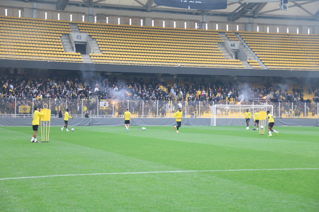 Οι οπαδοί δημιούργησαν εκρηκτική ατμόσφαιρα, τραγουδώντας συνθήματα και ανάβοντας καπνογόνα, δίνοντας ψυχολογική ώθηση στην ομάδα.