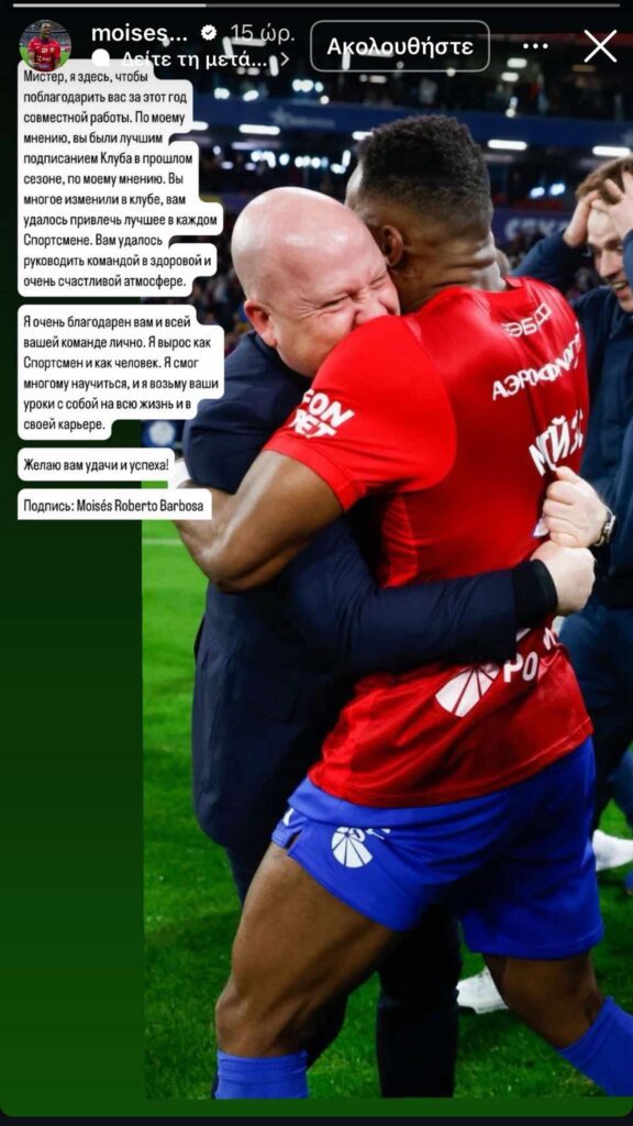 Η αποχώρηση του Νίκολιτς από τη ρωσική ομάδα φαίνεται πως άφησε έντονο αποτύπωμα στα αποδυτήρια, με τον Μόουζες να αναρτά ένα ιδιαίτερα συγκινητικό μήνυμα στα social media, αναγνωρίζοντας την προσφορά και την επιρροή του έμπειρου προπονητή.