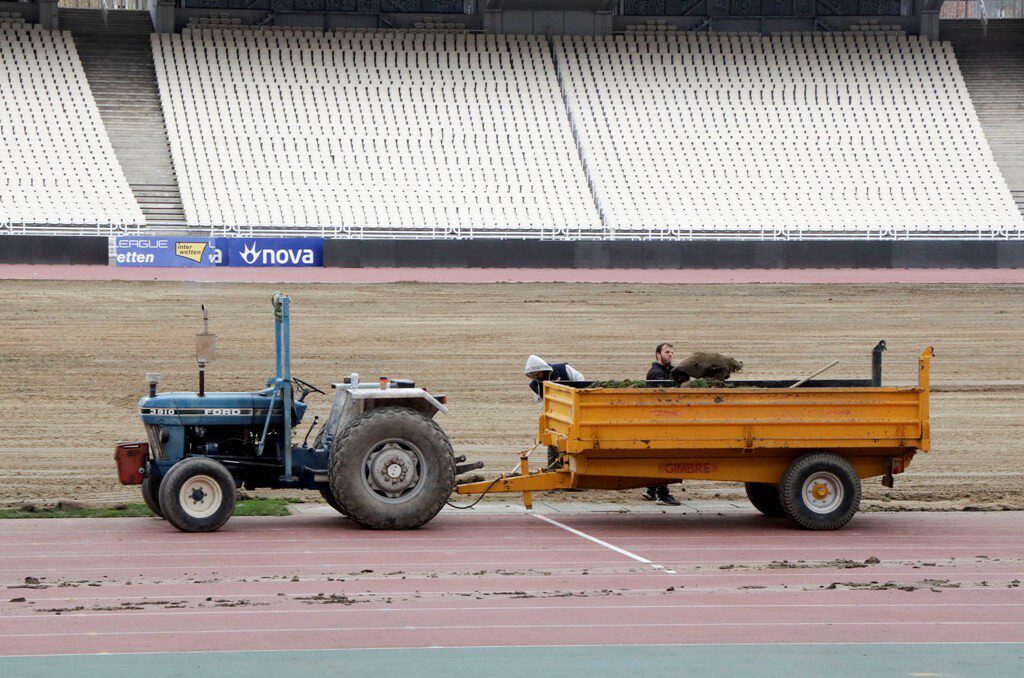 Σε φουλ ρυθμούς βρίσκονται οι εργασίες ολικής αντικατάστασης του χλοοτάπητα στο ΟΑΚΑ.