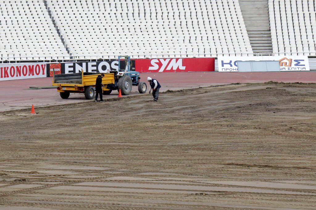 Τις προηγούμενες δύο φορές που έγιναν έργα βελτίωσης στον χλοοτάπητα του Ολυμπιακού Σταδίου, δεν υπήρχε ο απαιτούμενος χρόνος για να γίνει σωστή δουλειά, λόγω των υποχρεώσεων της ΑΕΚ, του Παναθηναϊκού και της Εθνικής ομάδας που το χρησιμοποιούν ως έδρα.