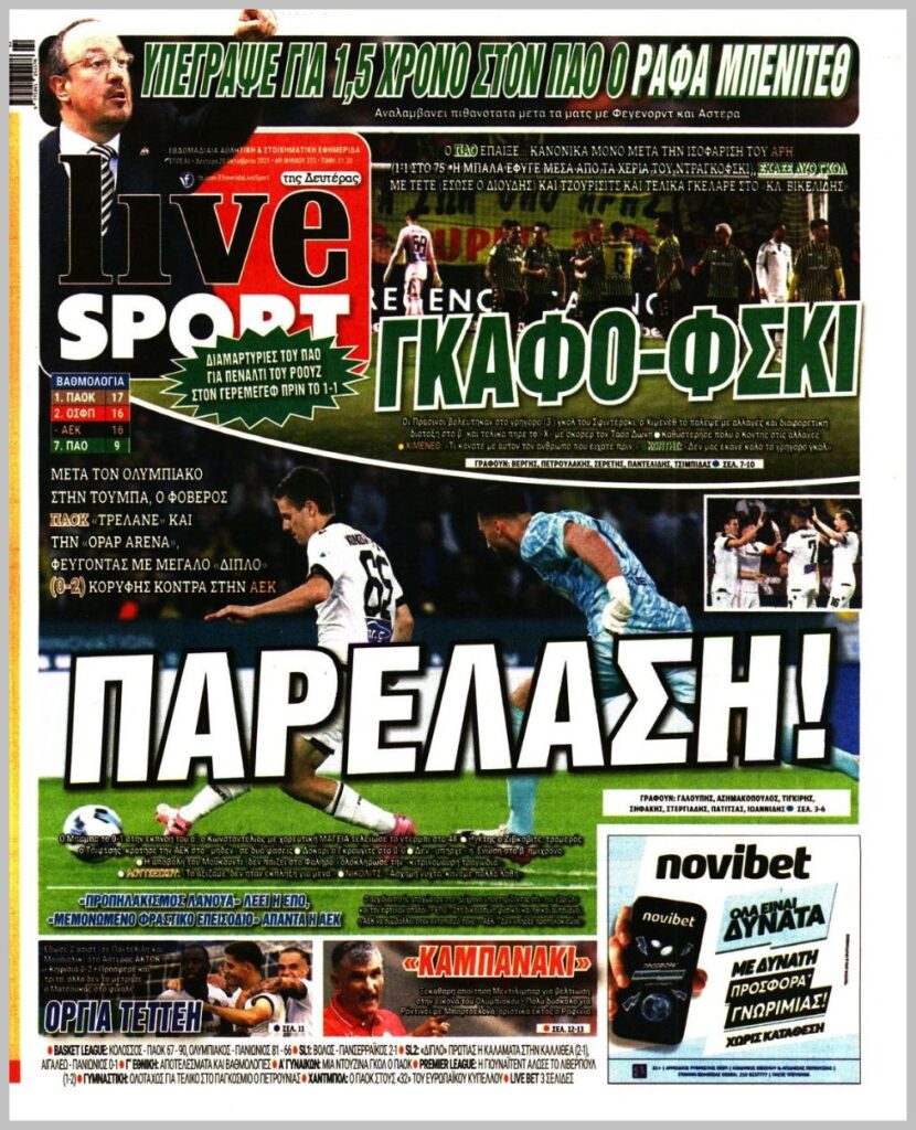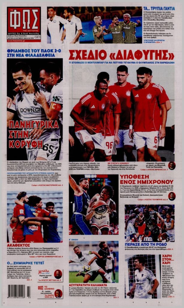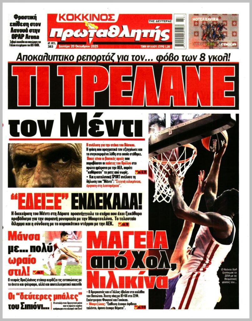 Δείτε όλα τα σημερινά πρωτοσέλιδα (20/10) του αθλητικού τύπου και το ευρύτερο ρεπορτάζ του ελληνικού ποδοσφαίρου.