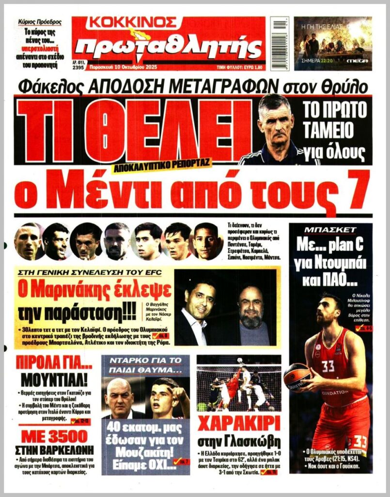 Τα αθλητικά πρωτοσέλιδα της Παρασκευής 10/10