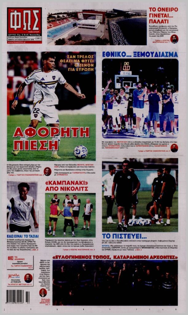 Τα αθλητικά πρωτοσέλιδα της Πέμπτης 7/8