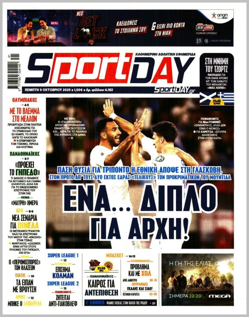Τα αθλητικά πρωτοσέλιδα της Πέμπτης 9/10