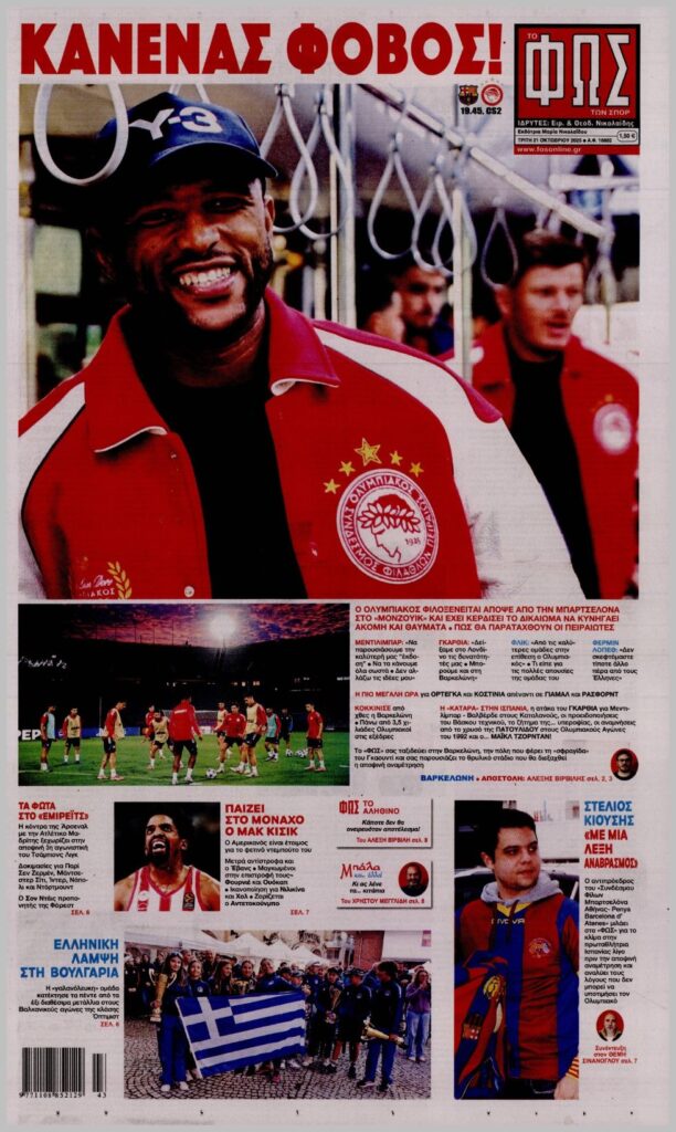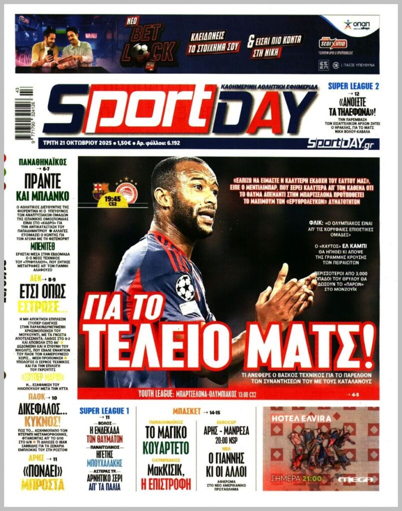 Τα αθλητικά πρωτοσέλιδα της Τρίτης 21/10
