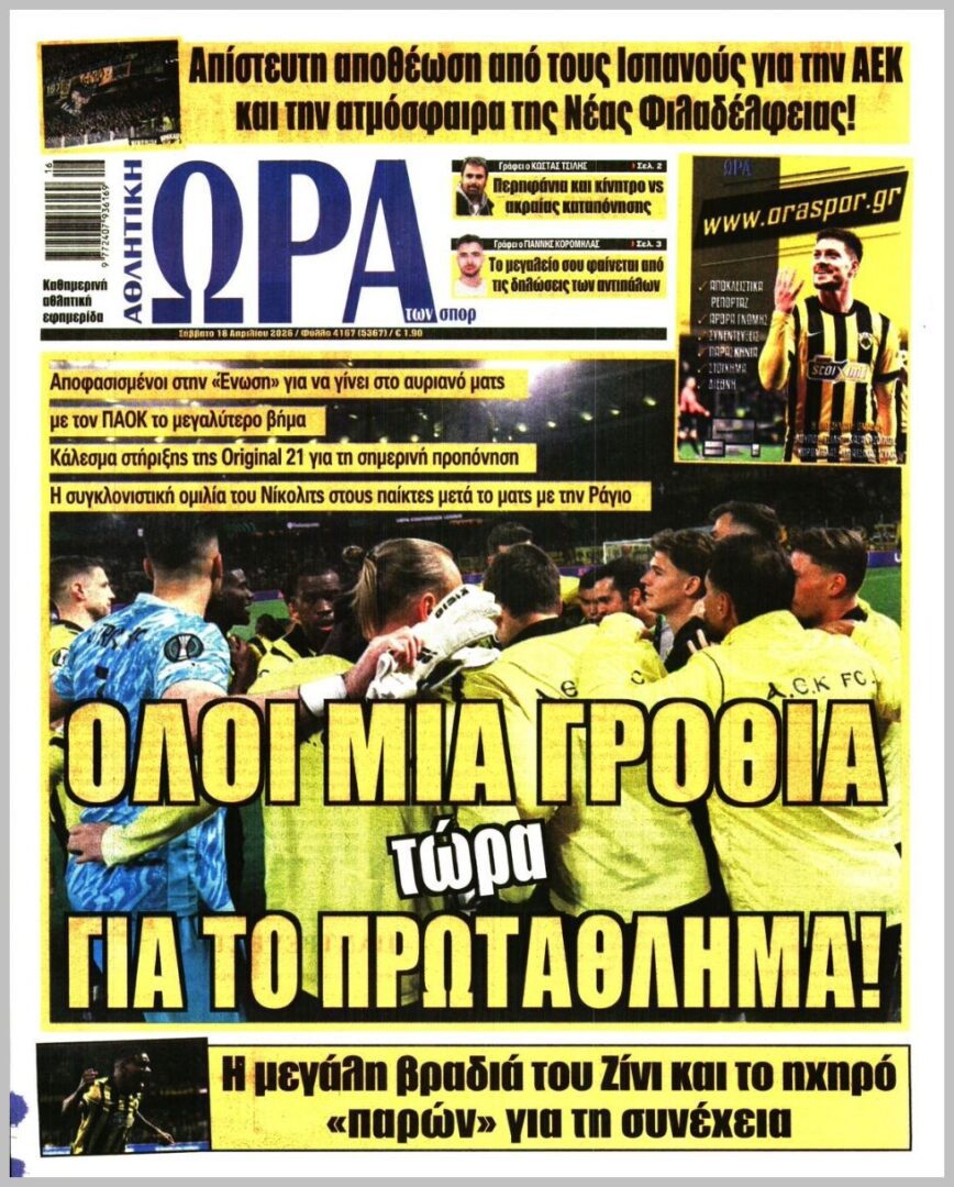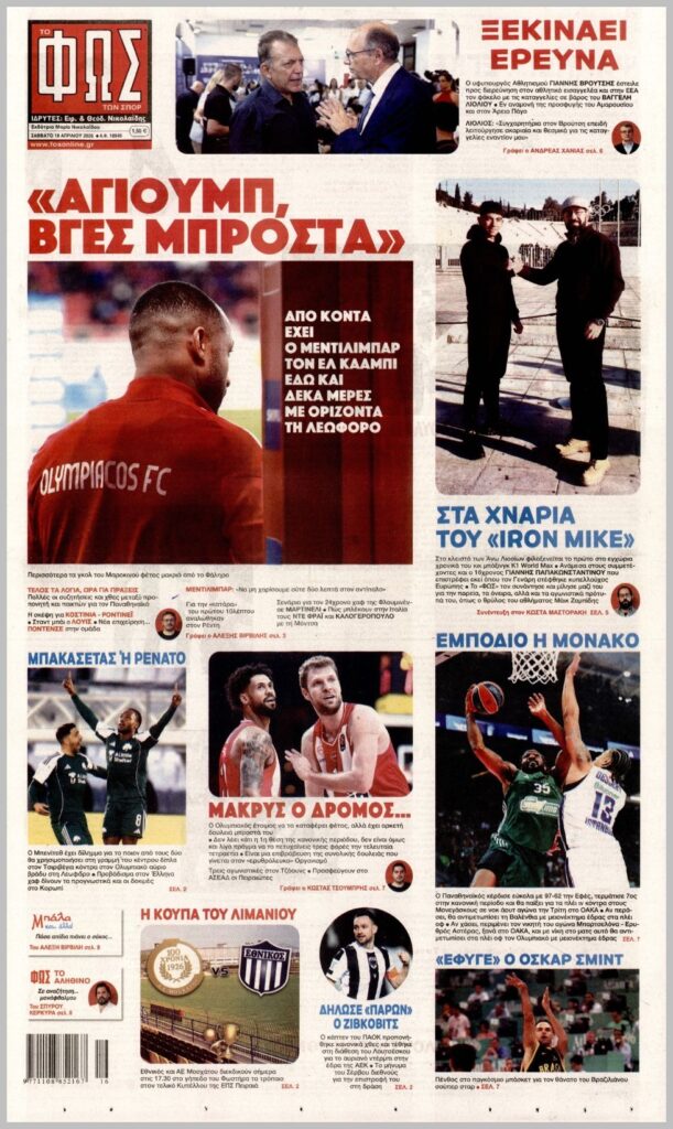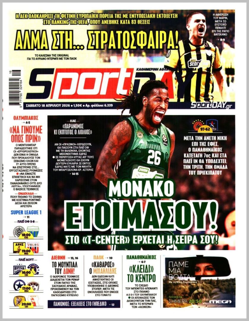 Τα αθλητικά πρωτοσέλιδα του Σαββάτου 18/4