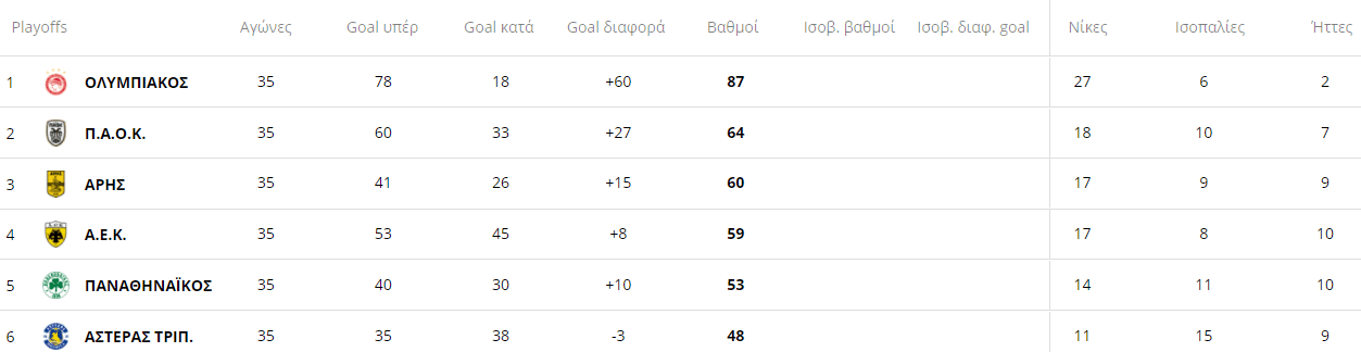 Play Off-Βαθμολογία: Στην 4η θέση η ΑΕΚ και στο -1 από τον Άρη (pic)
