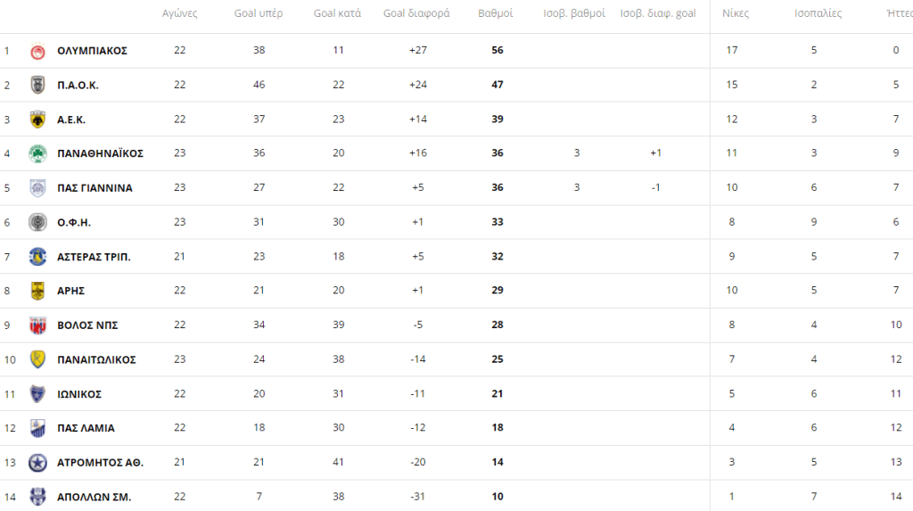 Super League – Βαθμολογία: Πλησίασε στους 3 βαθμούς από την ΑΕΚ ο Παναθηναϊκός (pic)